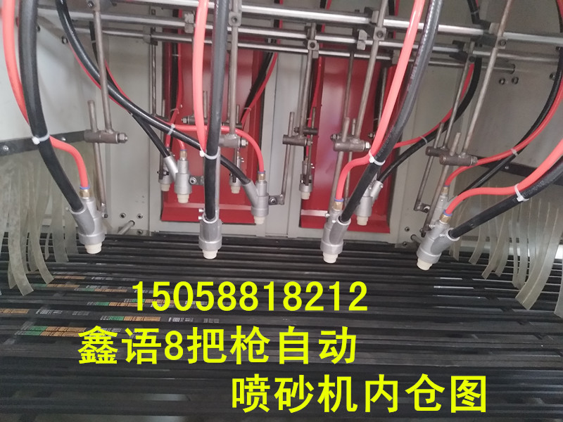 6:大型非標(biāo)產(chǎn)品:寬度80厘米以上或者不規(guī)則的產(chǎn)品,可以根據(jù)產(chǎn)品實(shí)際情況和尺寸大小定做16支噴槍的自動(dòng)輸送噴砂機(jī)或者更多噴槍的機(jī)器。